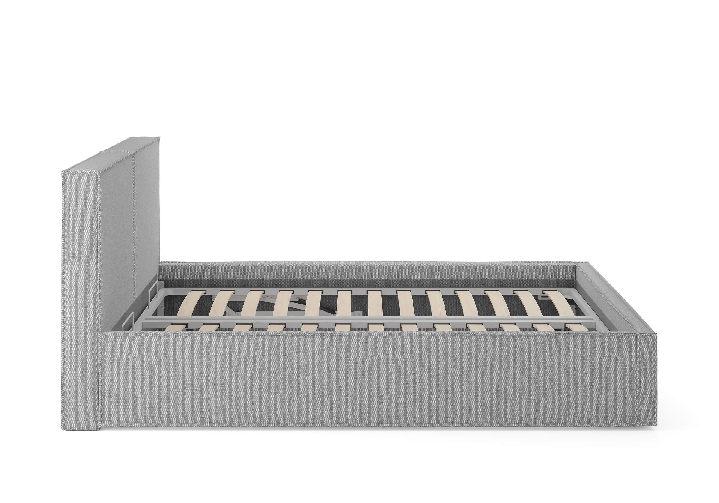 Возможна установка подъемного механизма с вместительным бельевым ящиком. Дно бельевого ящика легко сдвигается для обеспечения уборки под кроватью.